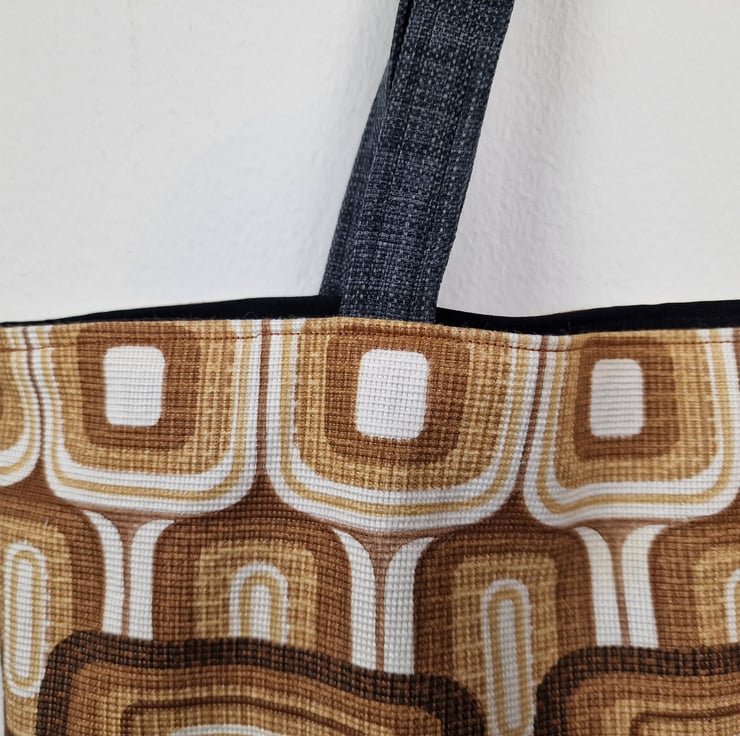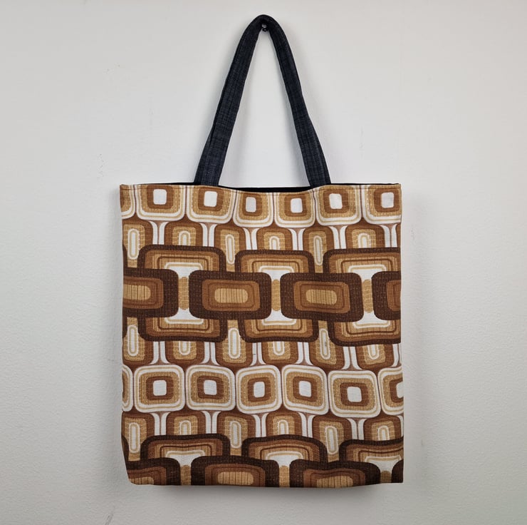 Vintage 1960s 1970s geometric print fabric shoulder tote bag