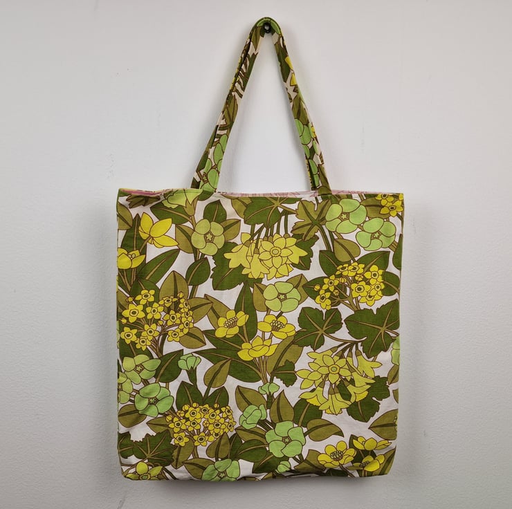 handmade shoulder bag, with boxed corners. I made using carefully selected vintage and repurposed fabrics.