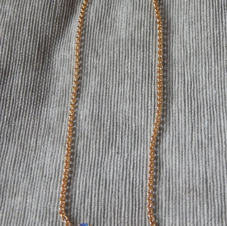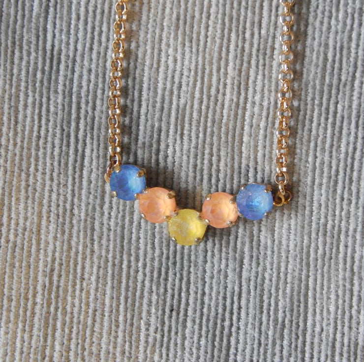 Made with 8mm Ocean Delite, Peach Delite and Sunshine Delite Swarovski chatons in a gold plated chain with stone settings. I am hoping to do variations with this necklace.