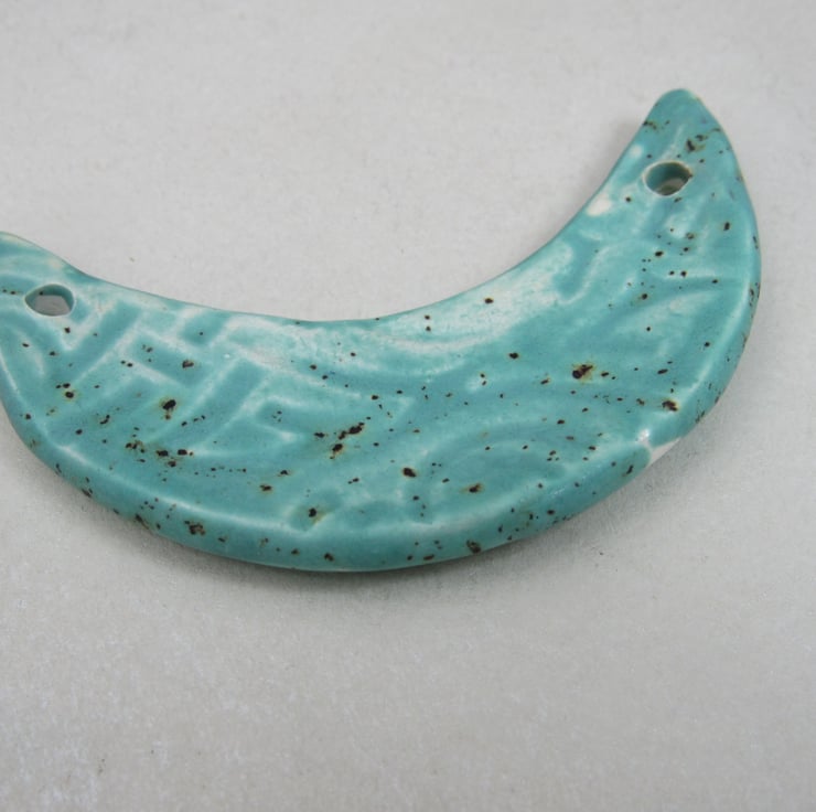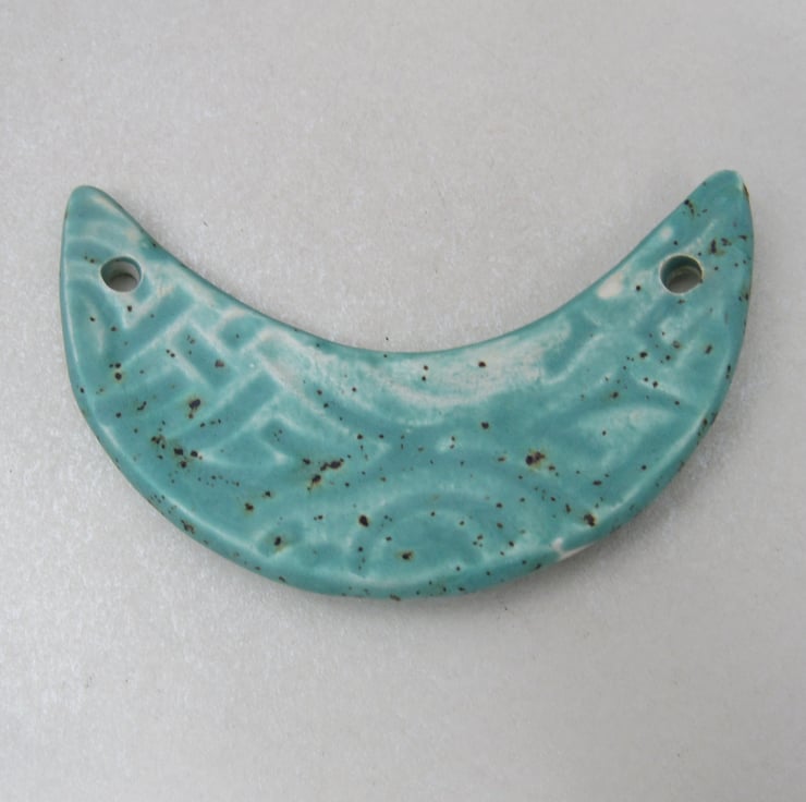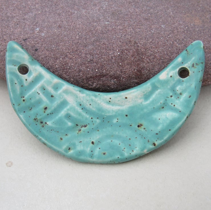 Stoneware ceramic bib pendant patterned with celtic knotwork.