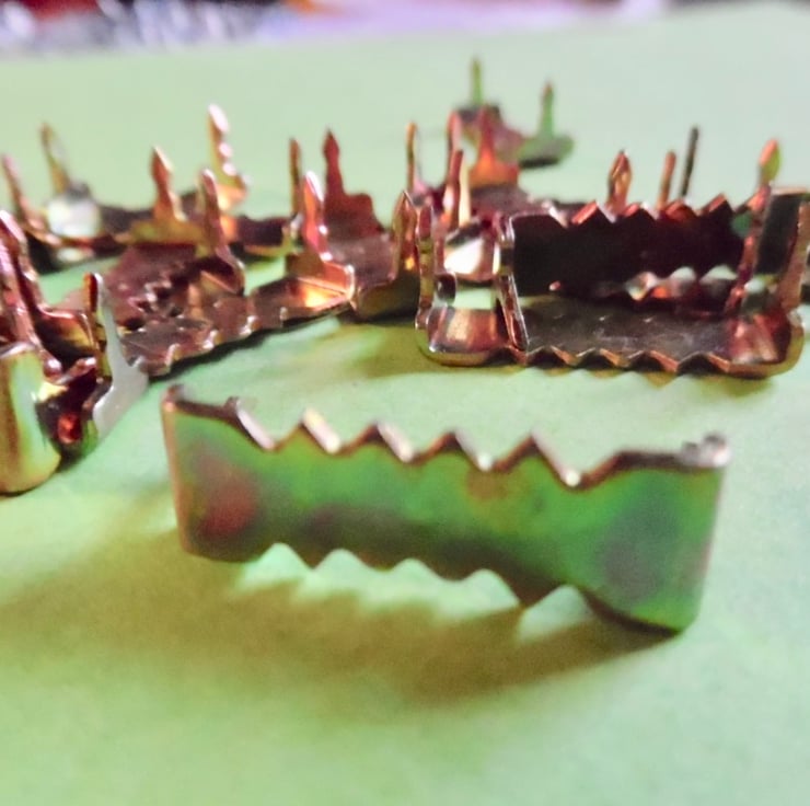 They are made from a strong steel with a zinc coating and have protruding arms which can be pushed into the wood.