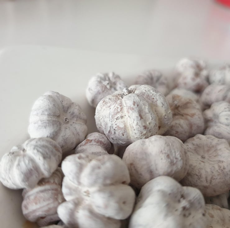 You get 3 cups (approximately 342 baby pumpkins) of white pumpkins, so also ideal for any Halloween or Autumn craft projects you may want to use them for.
