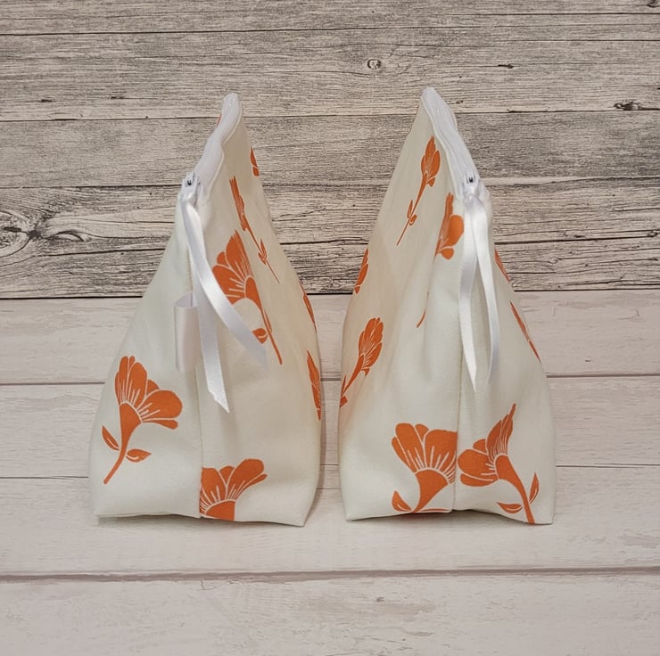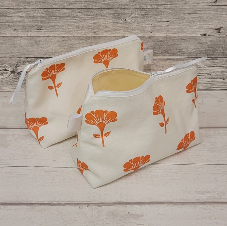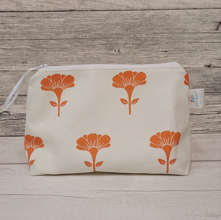Pretty little zipped cosmetic bag made in my orange marigold fabric.