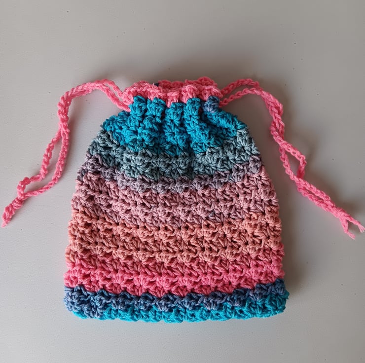 NEW SHOP! I love crocheting and creating beautiful and practical pieces and sourcing good quality yarns. This drawstring bag is made from a luxury variegated yarn. Enjoy unique work by Handmade by Joy - browse my shop for more, new items added regularly! BONUS - free postage!