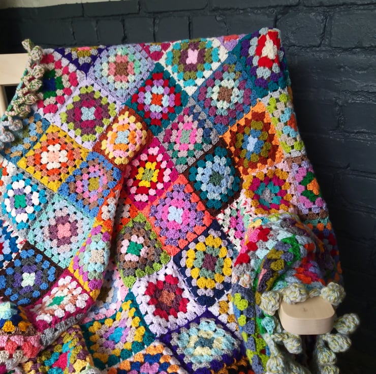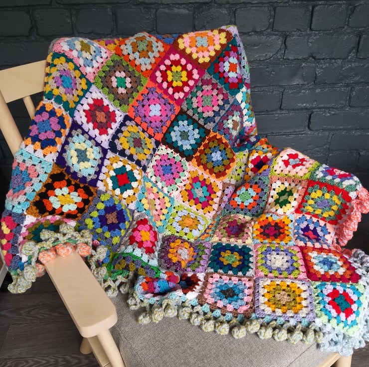 This blanket is made to order so will not have the exact square colours shown in the photos. It will though be just as bright and colourful. You will have the only one in existence of those colour placements!