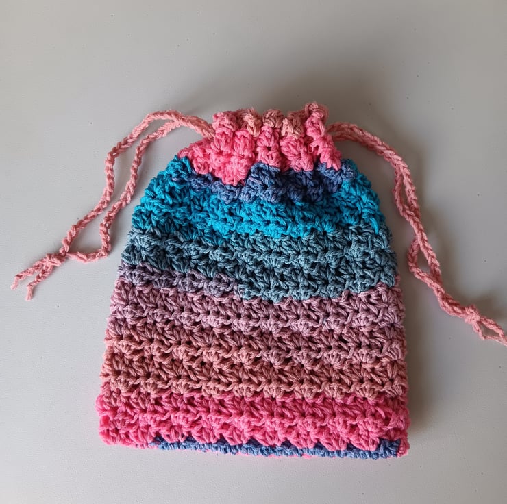 NEW SHOP! I love crocheting and creating beautiful and practical pieces and sourcing good quality yarns. This drawstring bag is made from a luxury variegated yarn. Enjoy unique work by Handmade by Joy - browse my shop for more, new items added regularly! BONUS - free postage!