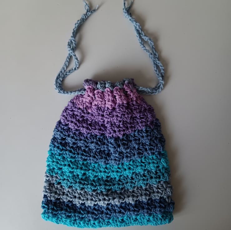 NEW SHOP! I love crocheting and creating beautiful and practical pieces and sourcing good quality yarns. This drawstring bag is made from a luxury variegated yarn. Enjoy unique work by Handmade by Joy - browse my shop for more, new items added regularly! BONUS - free postage!