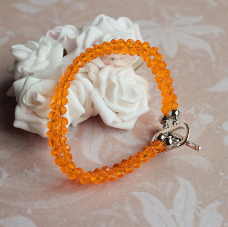 This pretty bracelet beaded in gorgeously zesty tangerine orange glass beads is a great way to add a little colour, or a little more colour, to your outfit!