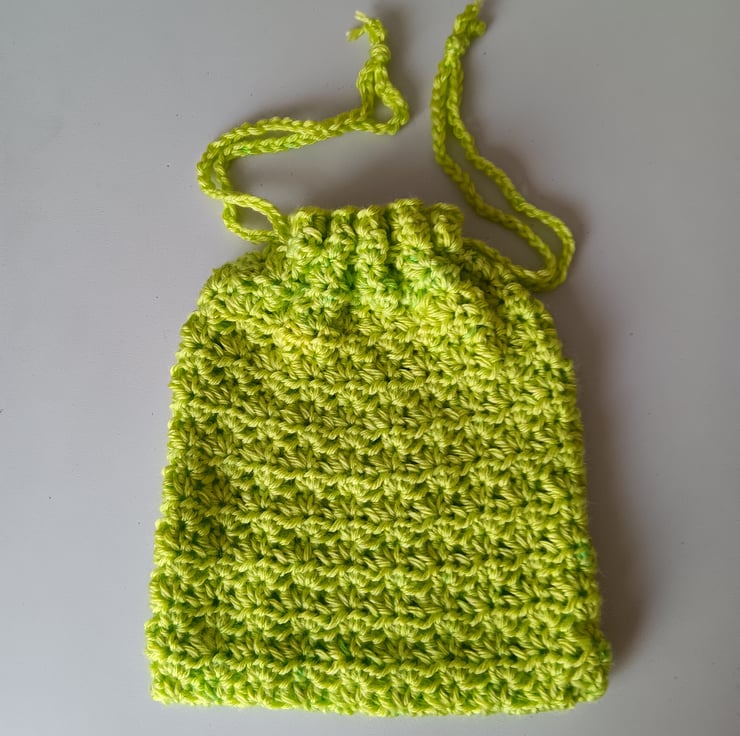 NEW SHOP! I love crocheting and creating beautiful and practical pieces and sourcing good quality yarns. This drawstring bag is made from a luxury satin-feel yarn. Enjoy unique work by Handmade by Joy - browse my shop for more, new items added regularly! BONUS - free postage!