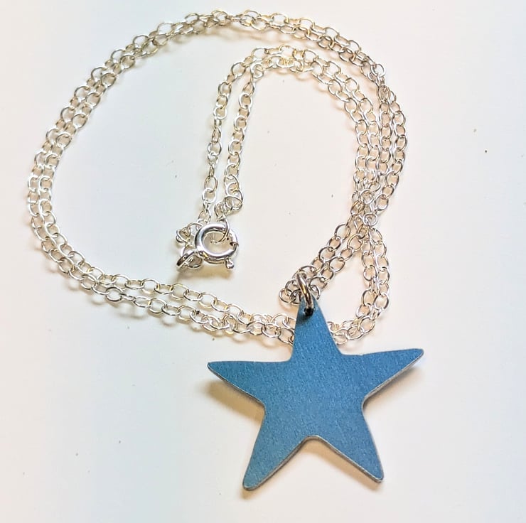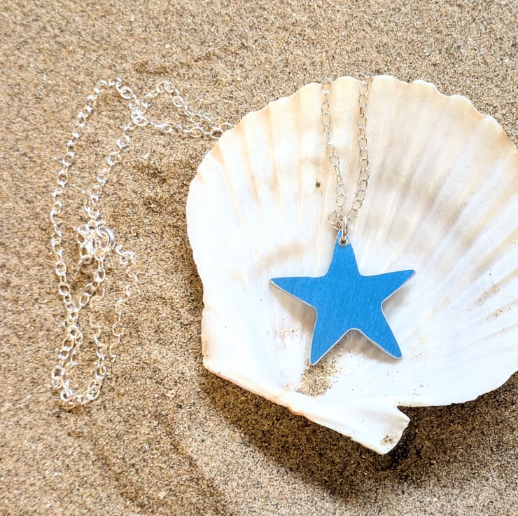 Now you can wear your very own sea star, hand dyed & sawn from anodised aluminium, a beautiful lightweight necklace perfect for the summer holidays.