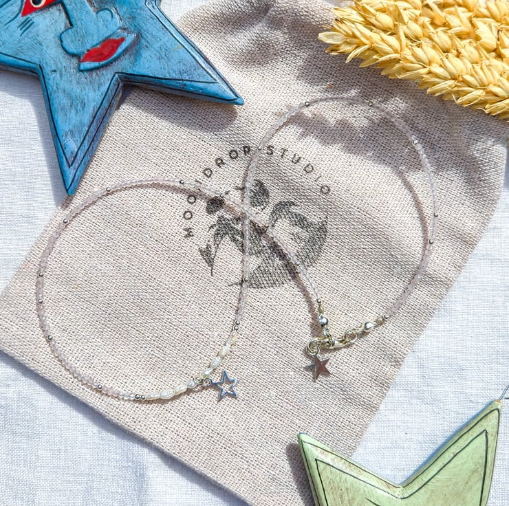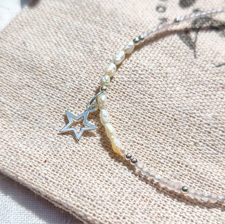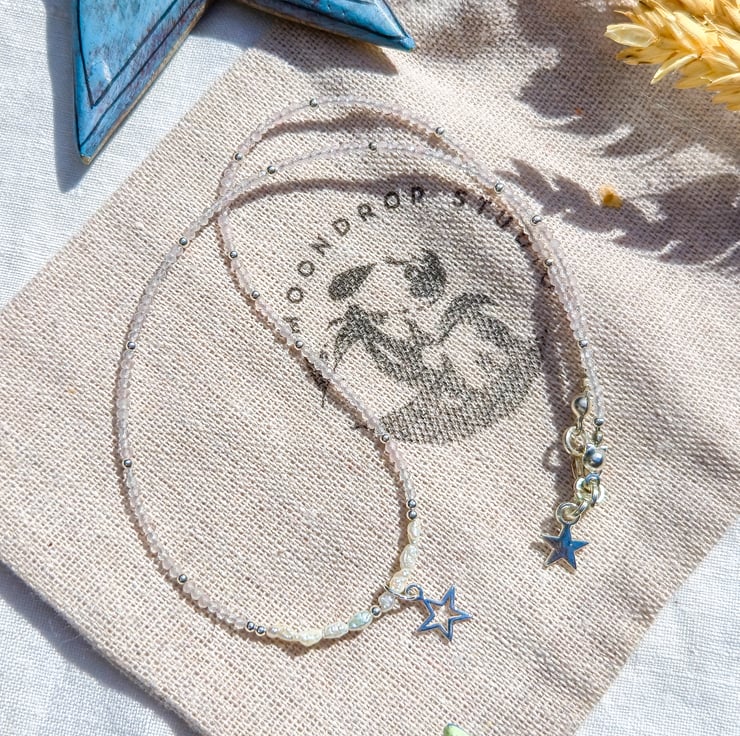 To complete the design, I’ve used sterling silver throughout – from the round accent beads to the secure clasp – and added a dainty sterling silver star pendant for a touch of celestial sparkle.
