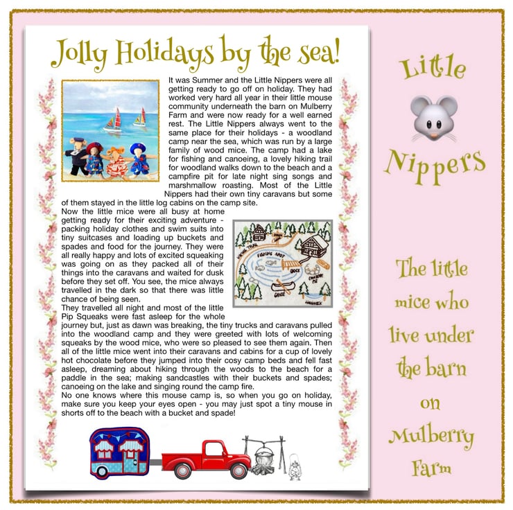 Little Nippers are a whole community of tiny wood mice, who live in a maze of little burrows and passages underneath the floor of the barn at Mulberry Farm. They are sometimes very hard to spot and Maisy and her friends rarely see them - but they are always there. The tiny mice all have their own cosy little cottages inside the burrows and work very hard in the fields, gathering seeds and berries, tiny fruits and bits of grain to take back to the burrows to be made into food. They even have their own little barn shops, where they can share the things they find in the fields and get the food they need to look after their families. They are a very happy little community who all take care of each other. There are also baby Nippers, who are called Pip Squeaks - these are very small and are not removable from their sleeping bags.