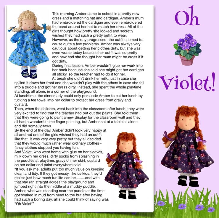 There are other children in Maisy’s class at school - Violet, Billy with his pet rabbit, Amber, Tilly, Rosie and her kittens, Amelia, Ruby, Marigold, Bobby with Max the dog, and the twins Oliver and Olivia, who have a puppy called Oscar. The dolls are all 26cm tall and baby Daisy is 16cm. Maisy and Mo love nothing more than having adventures with their friends. You can read about their adventures on my Facebook and Instagram pages - Maisy Muffin Rag Dolls and on my Mulberry Green Pinterest boards.