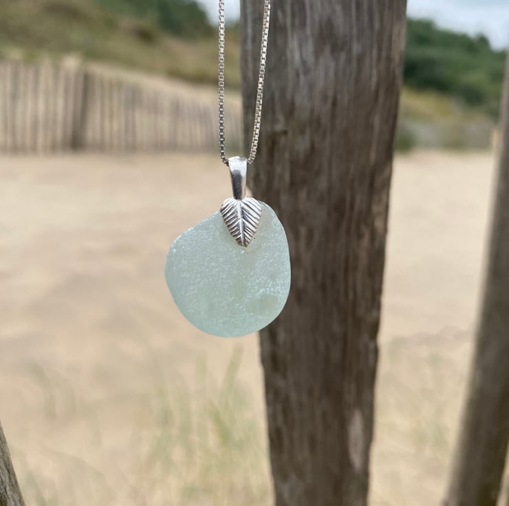 This is Sea Glass picked from my local beach in Cleethorpes hanging from a sterling silver chain on a silver hallmarked bail.
