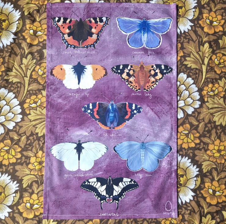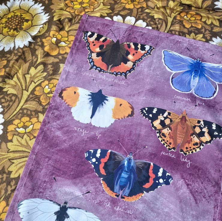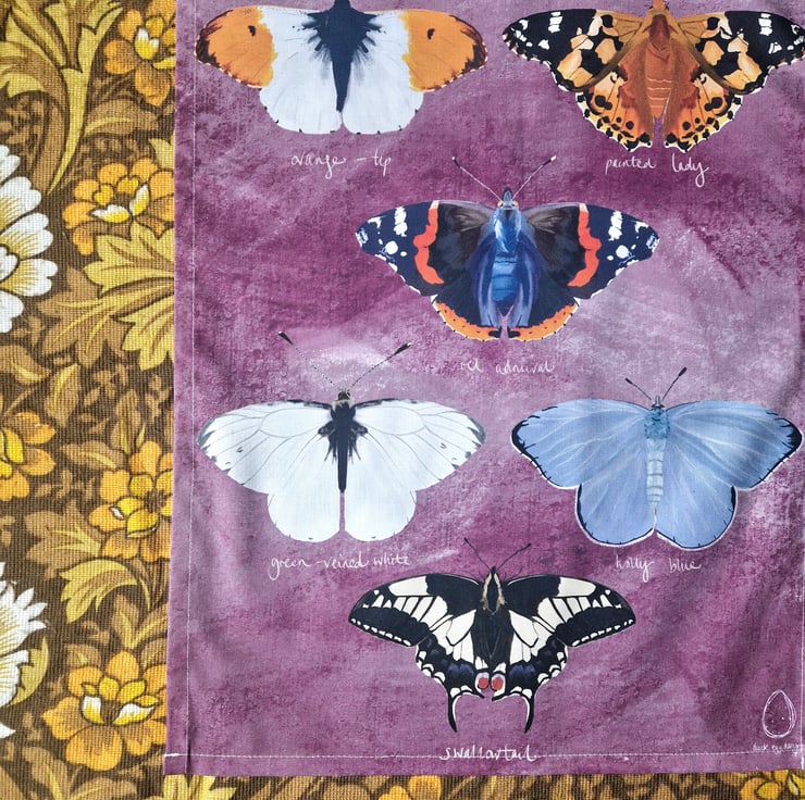 Butterflies tea towel illustrated by me and made in the UK with 100% cotton.