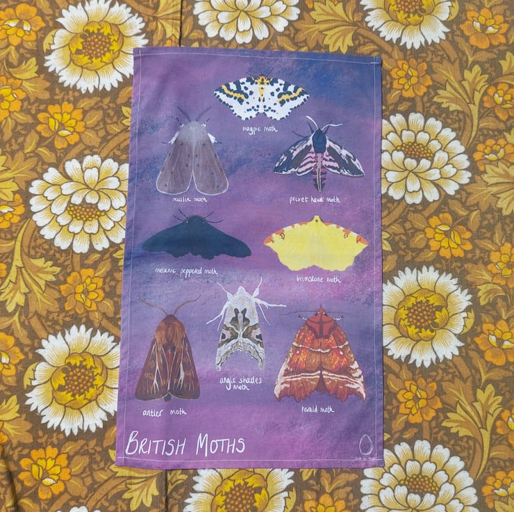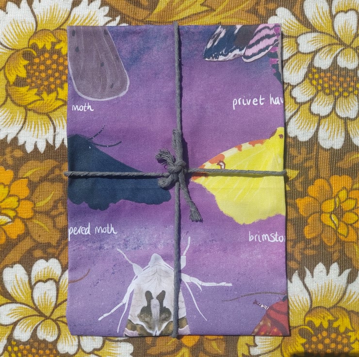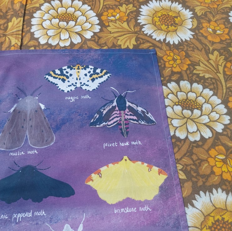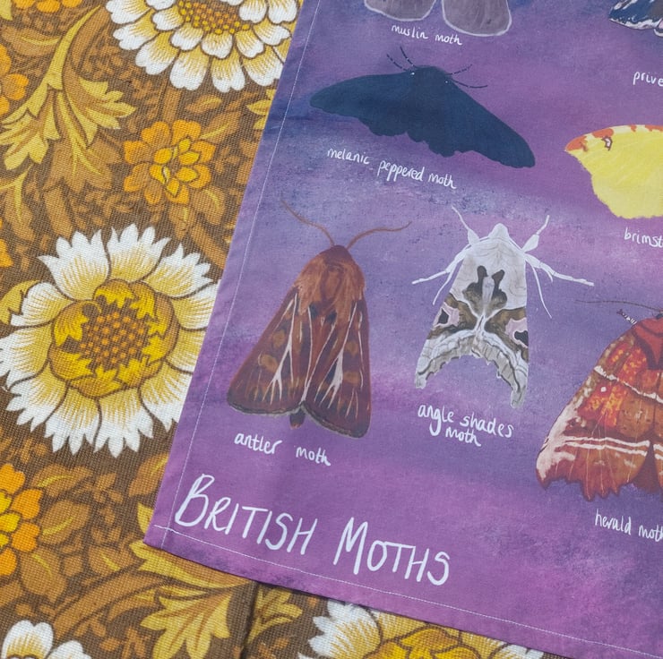 British moths tea towel illustrated by me and made in the UK with 100% cotton.