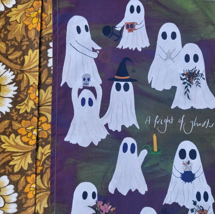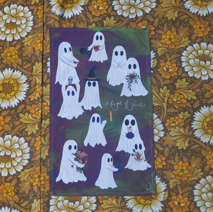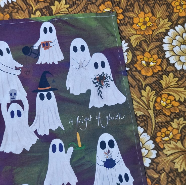 Fright of ghosts tea towel illustrated by me and made in the UK with 100% cotton.