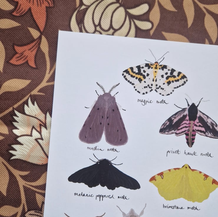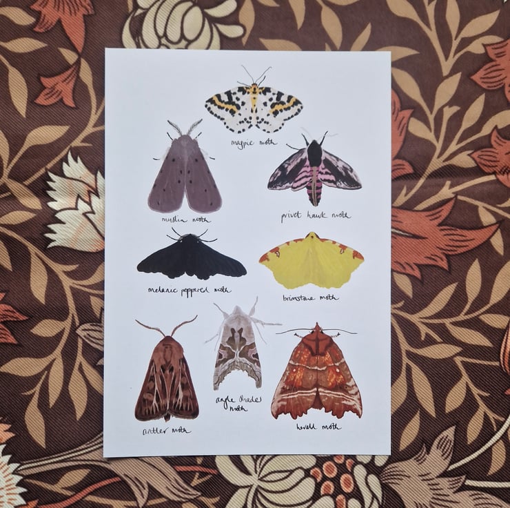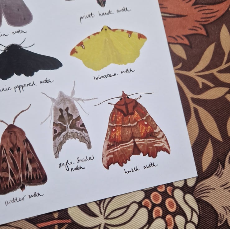 British moths art print illustrated by me and printed in the UK onto recycled paper.