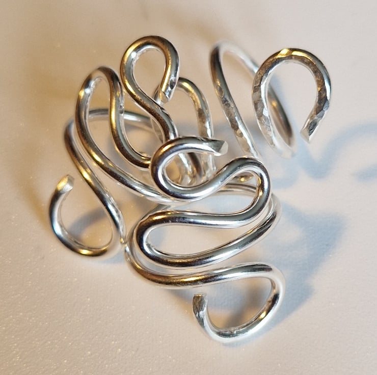 I enjoy working with sterling silver, and creating designs that take advantage of the natural features of this metal. So I love shaping these rings into organic, freeform patterns. Also, texturing silver is something that I include in many of my designs (as you will see from other items here in my shop!).