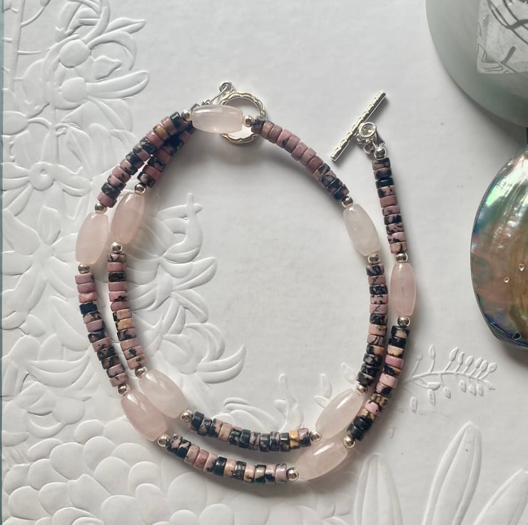 I love to use Rhodonite with Rose Quartz as they complement each other perfectly.