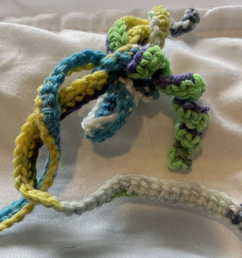 Found this pattern online; loved the design and thought it would look great for summer festivals paired with denim. Also a great way of using up leftover balls of wool!