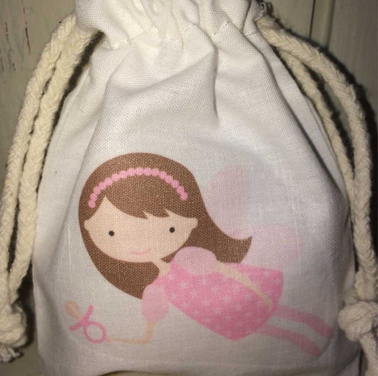 Gorgeous little 8cm x 11cm double drawstring cotton Dummy Fairy bag