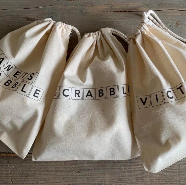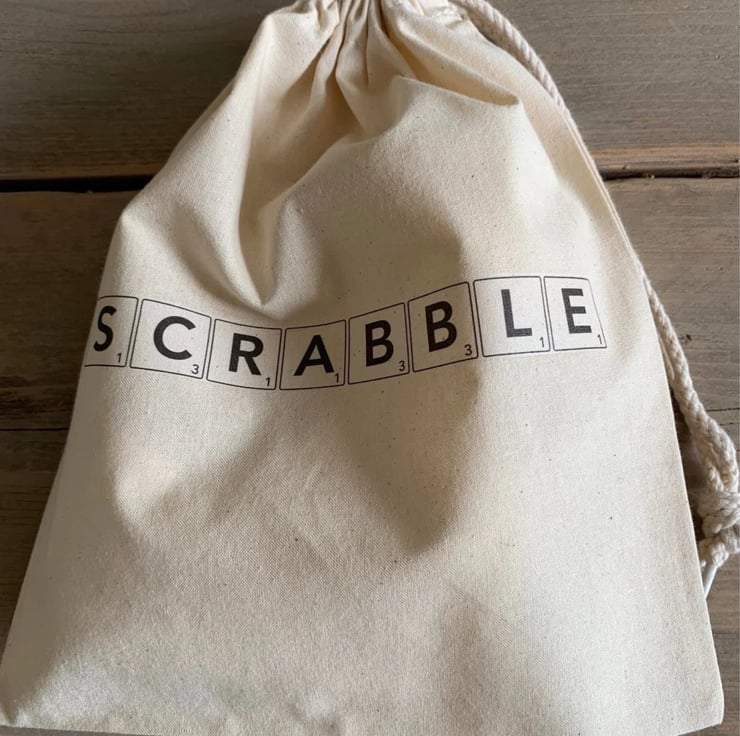 Lovely 25cm x 30cm (slightly wider than A4) cotton Scrabble or Rummikub bag with soft rope drawstring