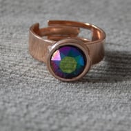 Made with 8mm crystal and aquamarine Swarovski chatons in an adjustable silver-plated chain and settings. I am hoping to do variations of this piece.