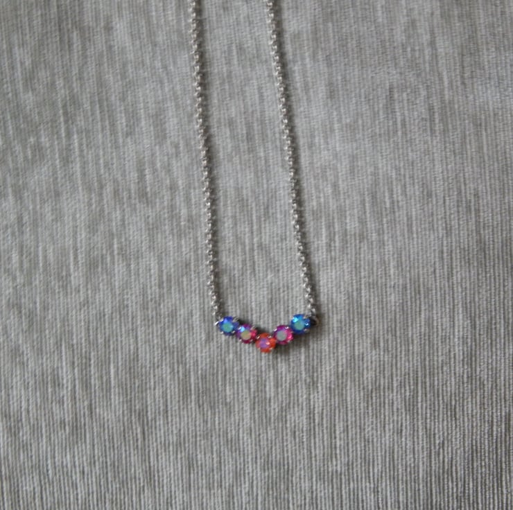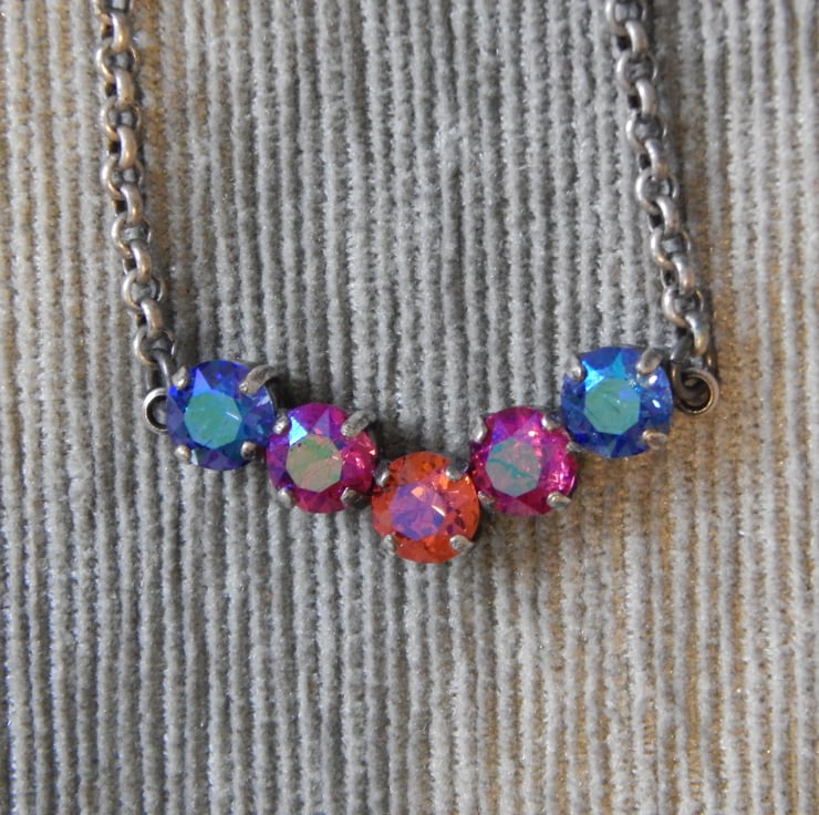 Made with 8mm Sapphire Illumine, Fuchsia Illumine, and Padparascha Illumine Swarovski chatons in an antique silver chain and settings. I hope to do variations of different metals for this piece.
