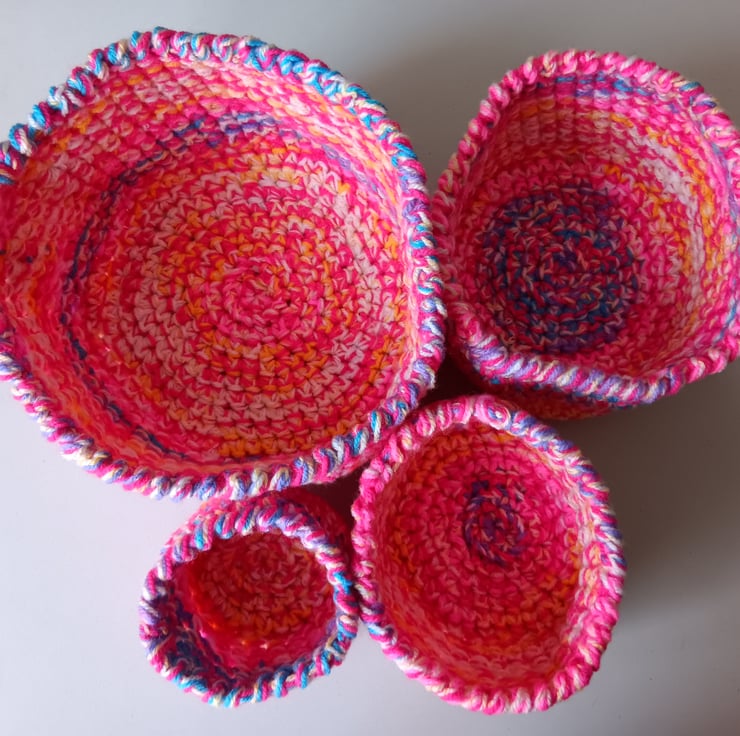 NEW SHOP! I love crocheting and creating beautiful and practical pieces and sourcing good quality yarns. These nesting baskets are made from a luxury variegated yarn. I have sets in my bedroom to hold makeup and trinkets, in my home office to hold pens and stationery and in my kitchen to hold all the bits and bobs that gather there. Enjoy unique work by Handmade by Joy - browse my shop for more, new items added regularly! BONUS - free postage!