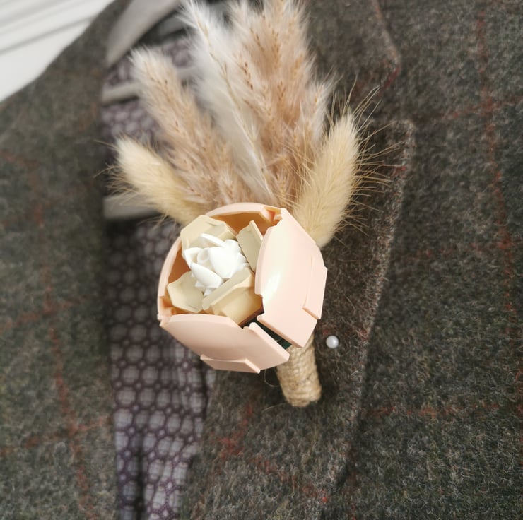 LEGO Rose Buttonhole ideal for proms or weddings. Handmade with dried flowers. Custom order welcome!