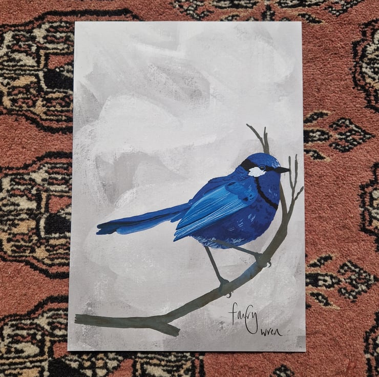 Fairy wren digital illustration drawn by me and printed onto A5 recycled paper.