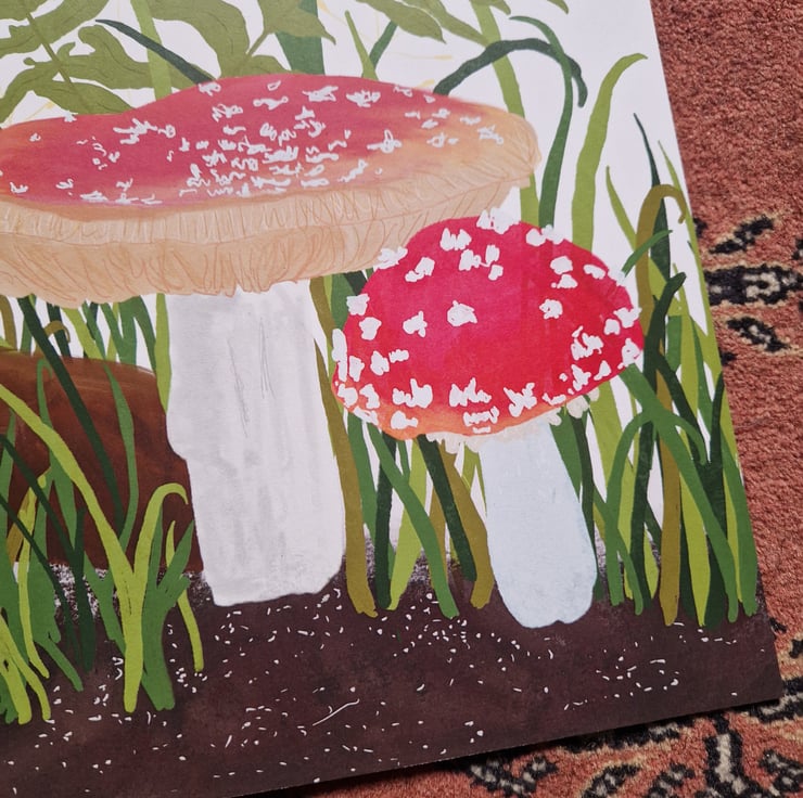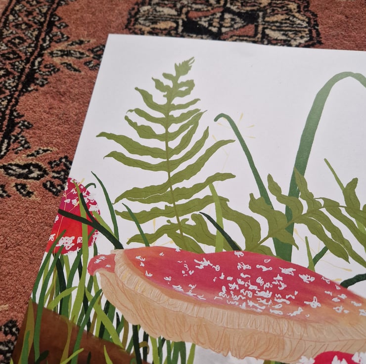 Fungi woodland illustration drawn by me and printed onto A4 recycled paper.
