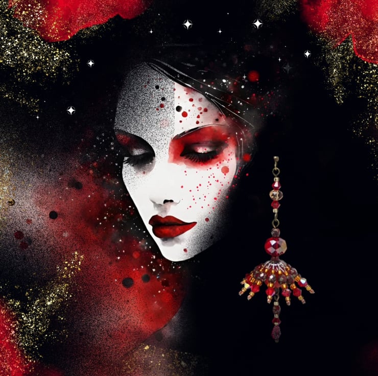 These elegant dressy statement earrings would be a perfect gift for someone who appreciates unique handmade designs. They'd look stunning with a Festive/Christmas party dress or for a Halloween outfit!