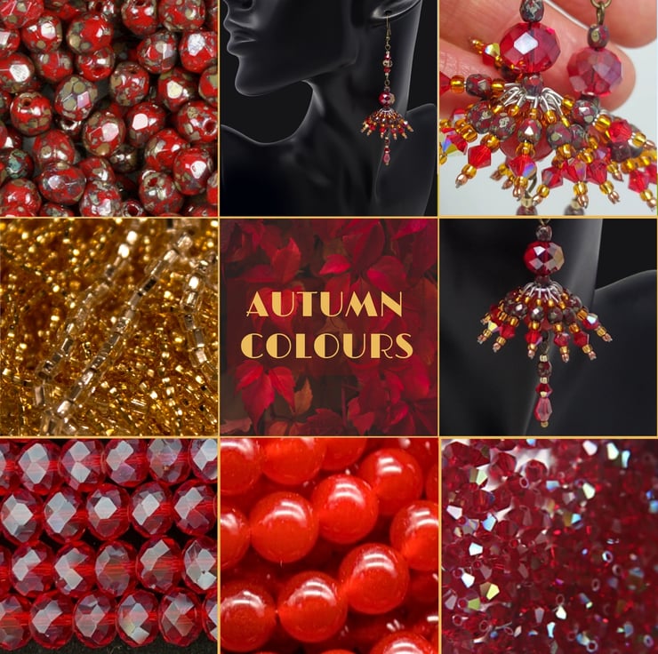 This is a red version of a green pair of earrings originally inspired by a domed cactus with a sunset background. I loved the domed shape and the gorgeous shades of greens and rustic golds. The reds and golds look stunning too..just like the colours of vibrant red and gold Autumn leaves