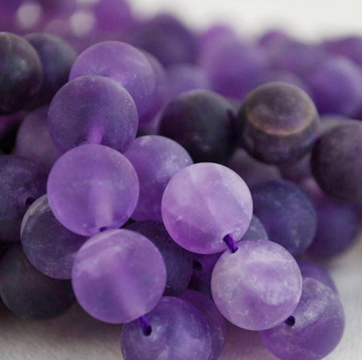 Long dangle purple beaded earrings with Frosted Amethyst Gemstone Beads.