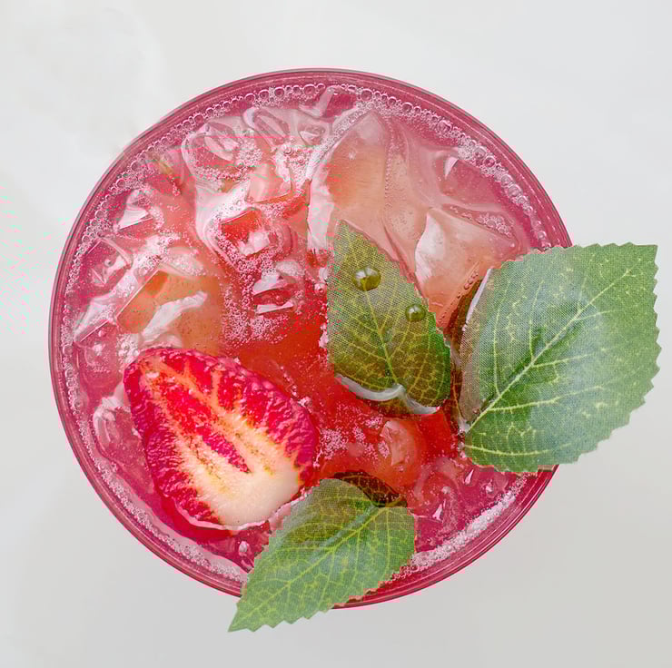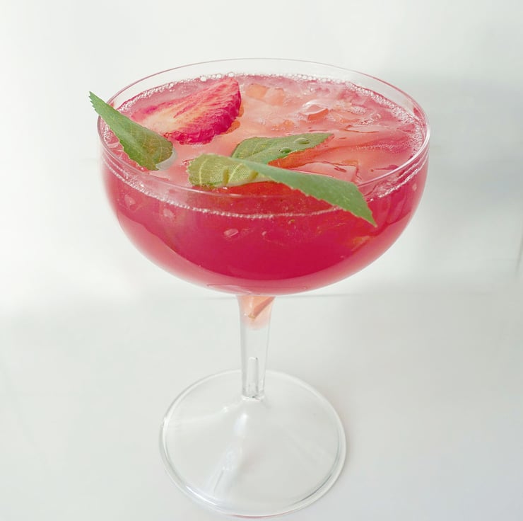It features fake ice, strawberry and mint sprig in a safety polycarbonate glass. This item is life sized.