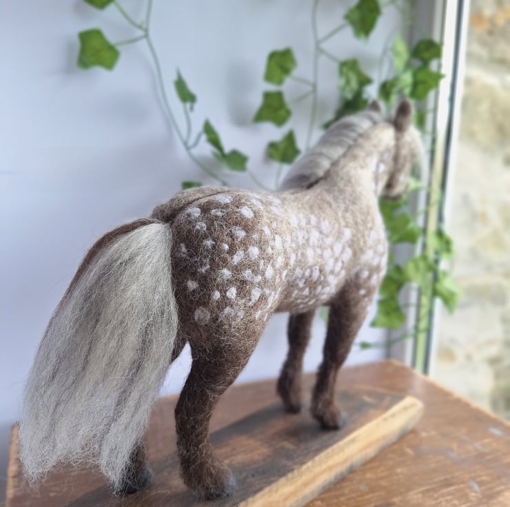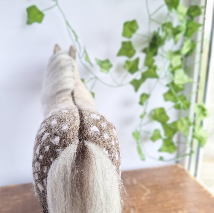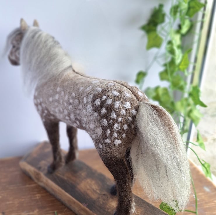 Felted sculptures take hours of intensive labour, using a single barbed felting needle to bind and shape the wool fibres into felt.