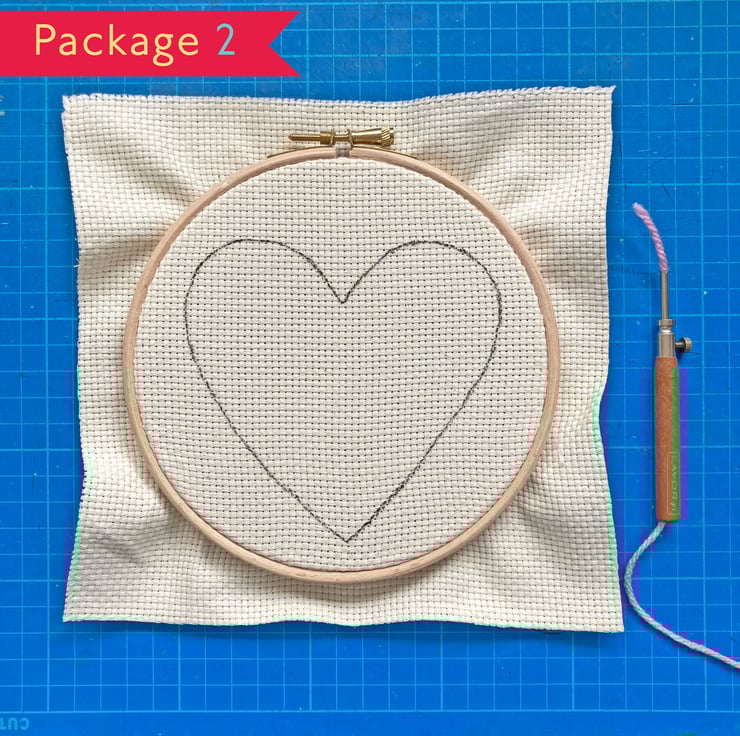 Package 2: The Kit Fully Set Up- I will glue the fabric so it won't unravel whilst you work, mount the fabric in the hoop correctly and draw the heart pattern on. Please see the 'Package 2' product photo. If you're a confident crafter and choose Package 1, I explain how to do these steps in the guide.