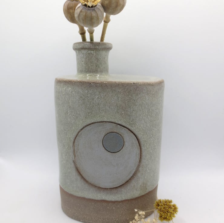 Grey bottle vase with light blue circular motif