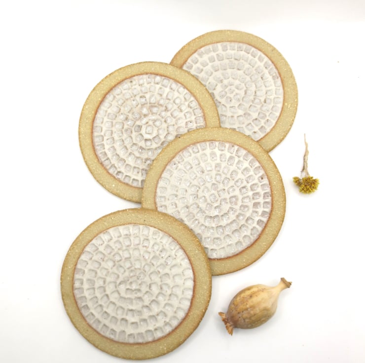 4 x textured white coasters