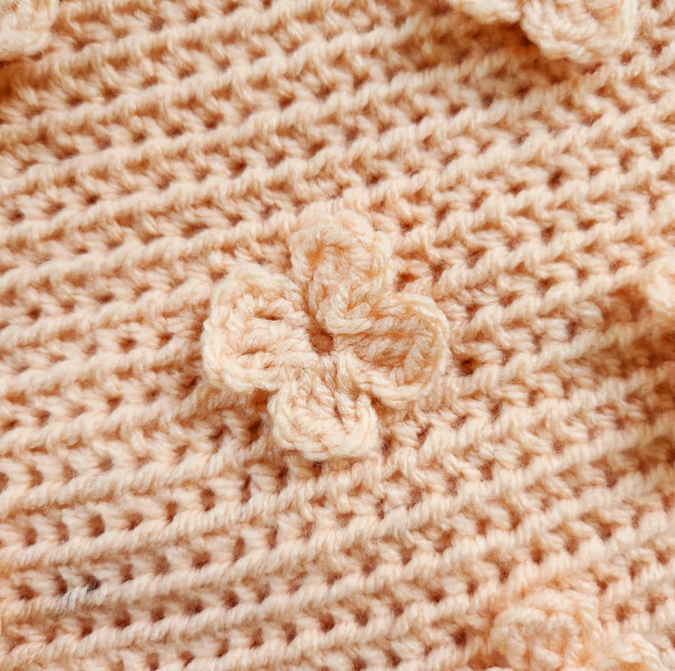 The flowers have been crocheted along with the stitch so they won't fall off.