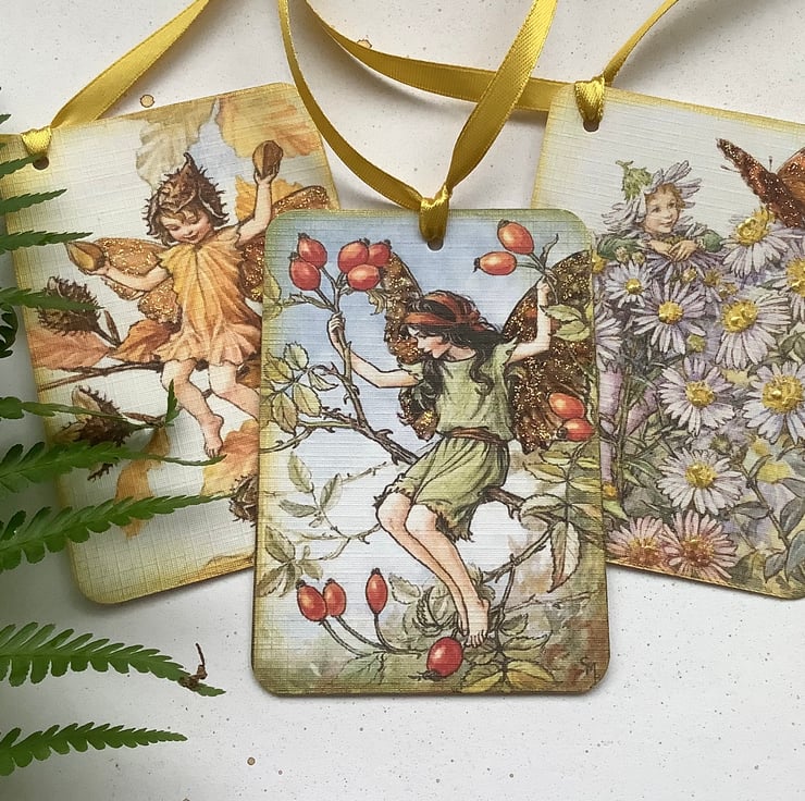 You will receive three tags( as pictured )..... 'Autumn mix 1 '....... 1 x Michaelmas Daisy Fairy , 1 x Beech Tree Fairy, 1 x Rosehip Fairy