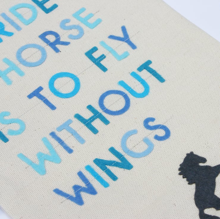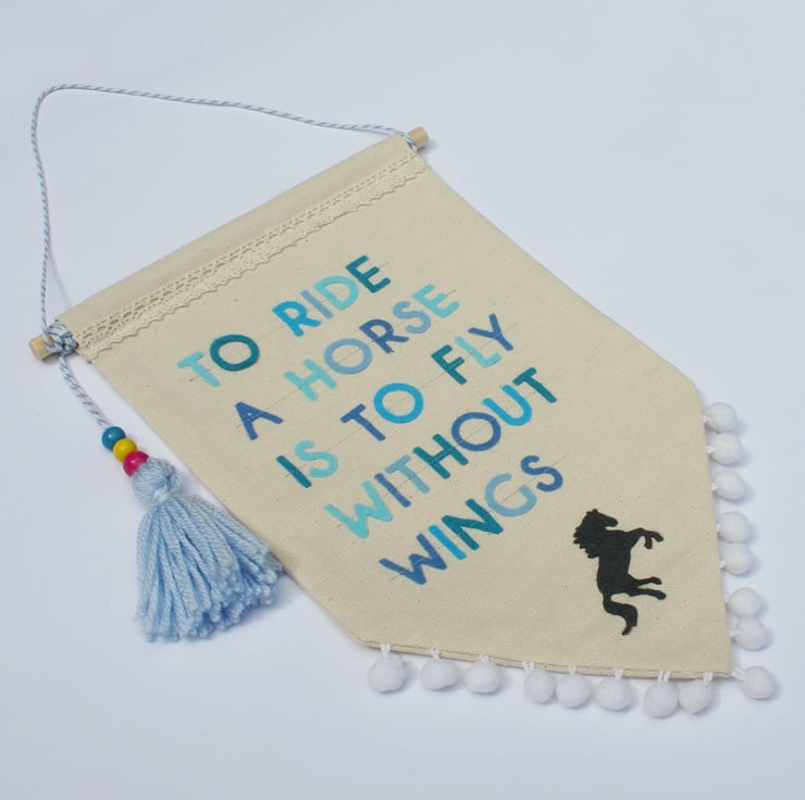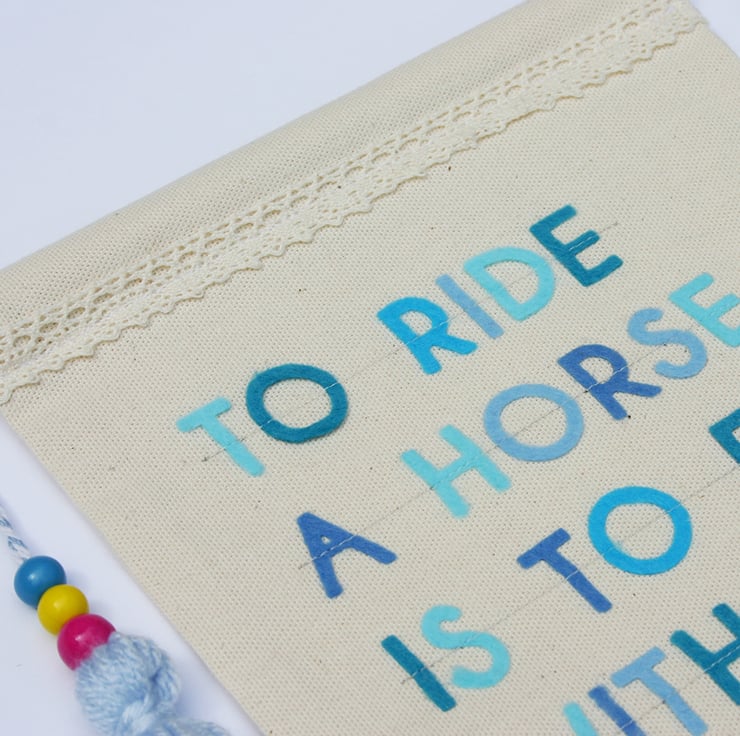 This lovely flying horse quote banner made with shades of blue felt letters will look pretty hanging on your wall and make you smile each time you read it.
