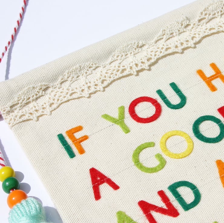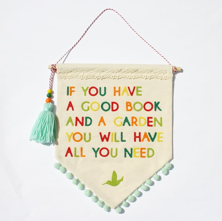 This delightful book in garden quote banner made with colourful felt letters will look pretty hanging on your wall and make you smile each time you read it.