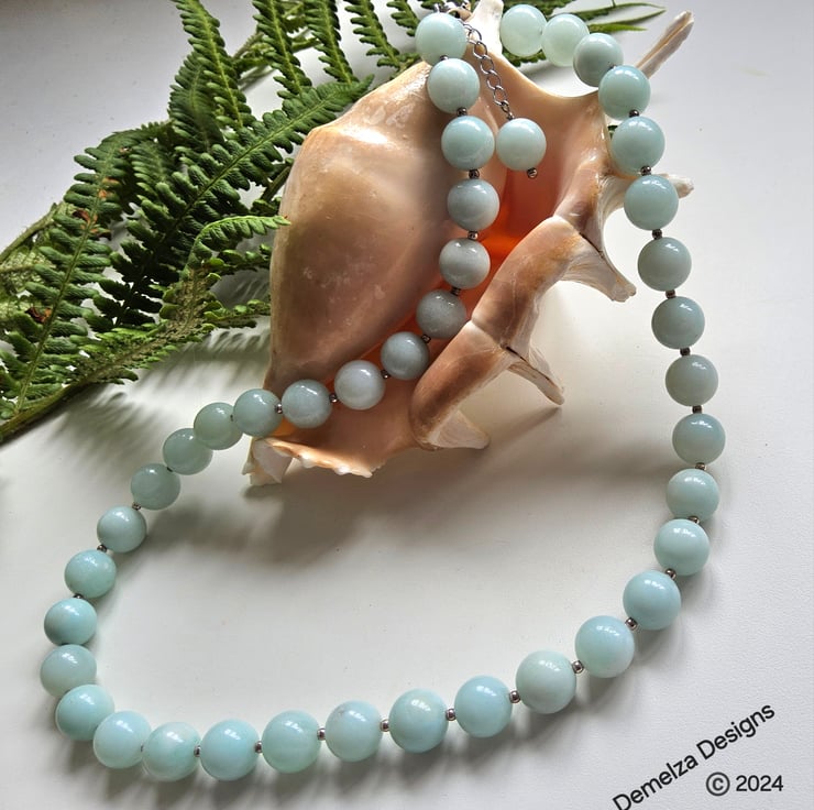 A beautiful tradional style necklace designed in Cornwall using top quality AA graded Russian Amazonite.