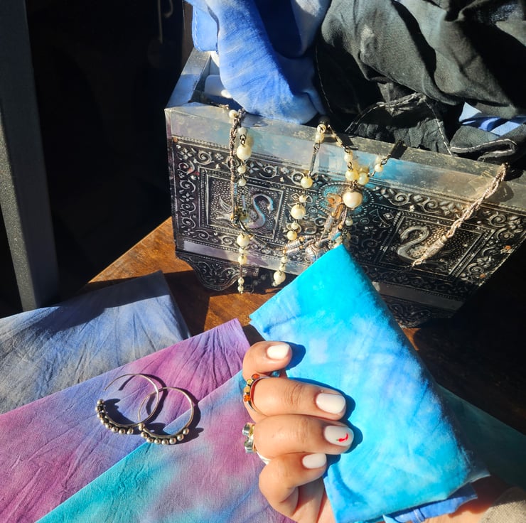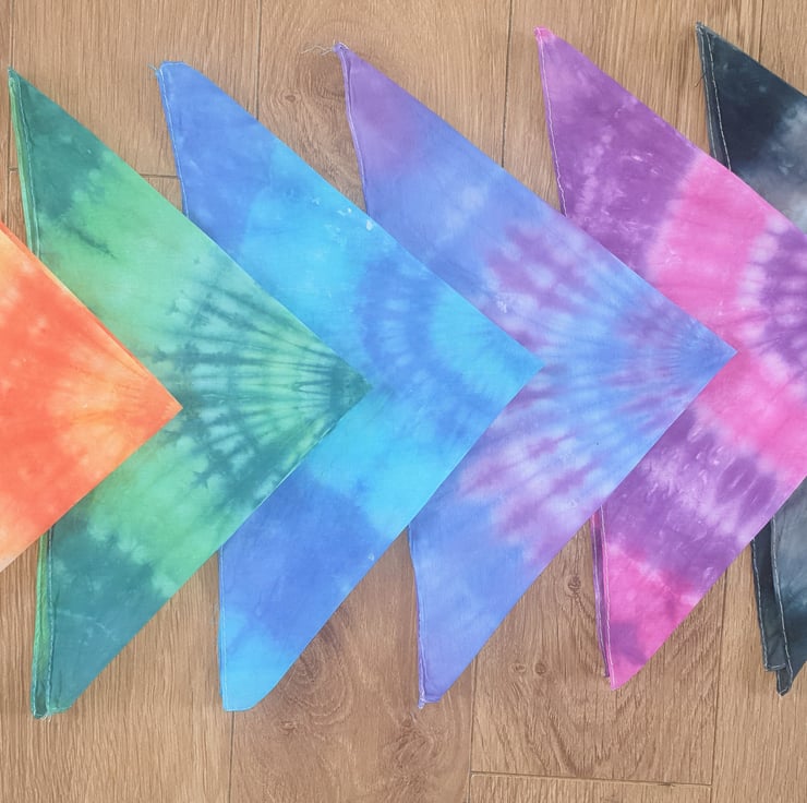 Bandana product is made of a thin 100% cotton material, measuring 22" x 22" approx., and then dyed with usual PeaceManClothing Gusto!