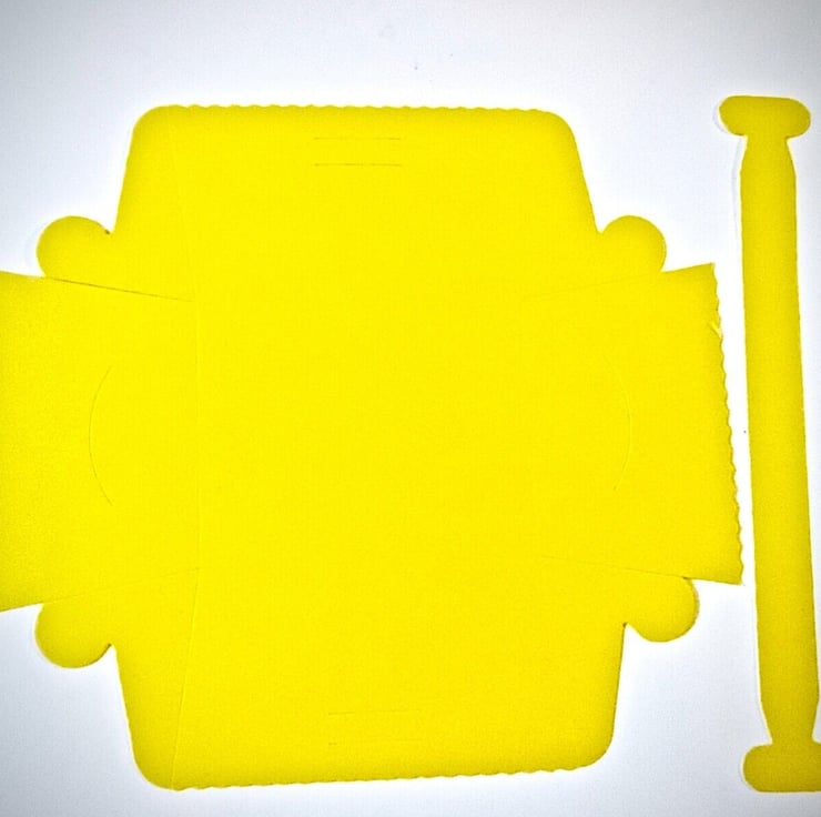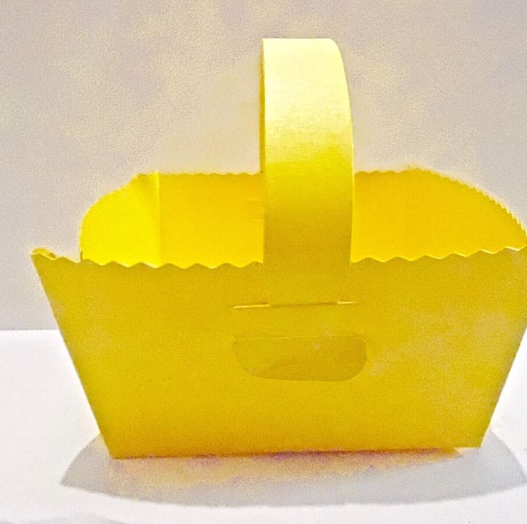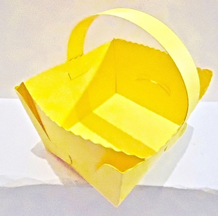 Just fold on the pre-creased lines, clip the sides into the pre-cut slits and thread the handle through the pre-cut slits in the sides.