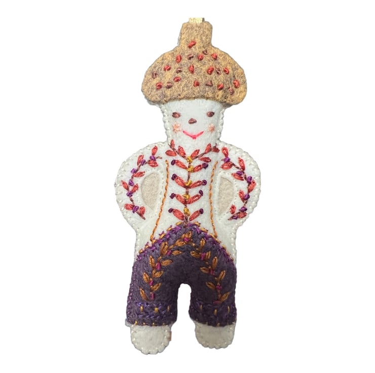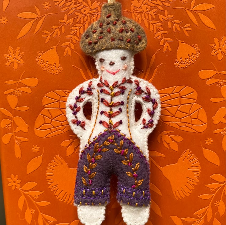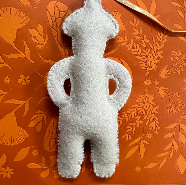 For this cheeky ‘make ‘ I have used blanket stitch,french knot over stitch, chain stitch and backstitch.This handmade felt ornament is made from 100% wool felt and stuffed with 100% wool fleece.