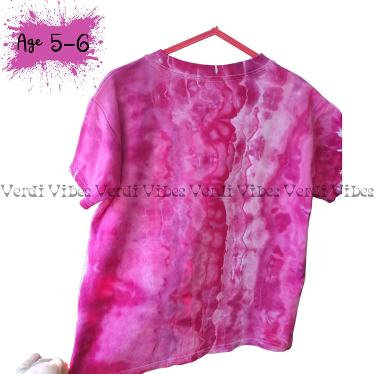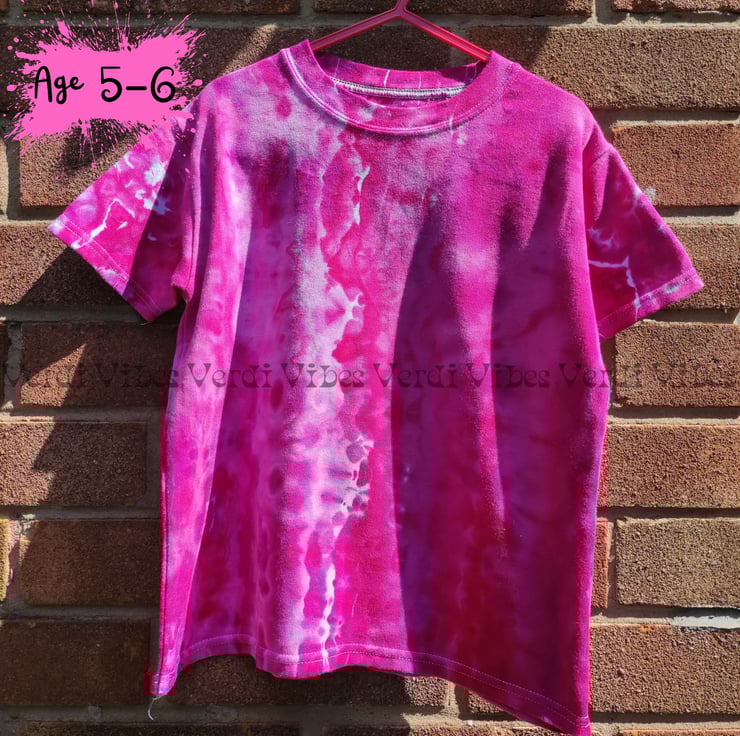 A short sleeved, round neck children's tee in shades of pink.